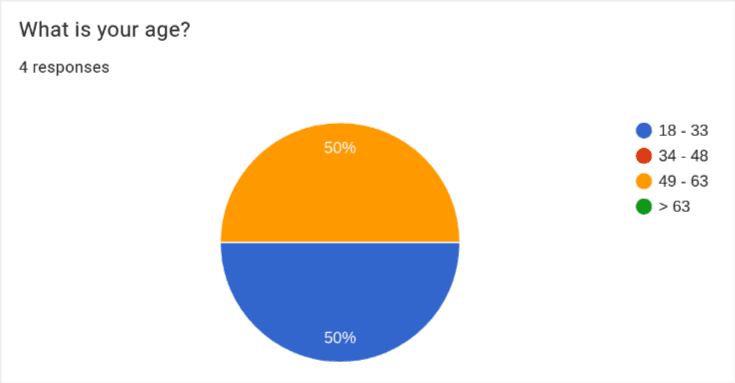For the ages, as planned, I interviewed 3 younger people (ages 18-33) as well as 2 older people (ages 49-63)