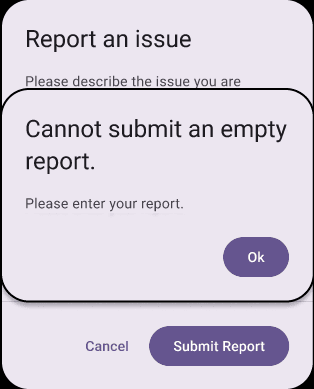 If the user tries to submit an empty feedback form we can alert them that it must contain something. This could help a user that might have mistakenly forgotten to add the report before submitting.