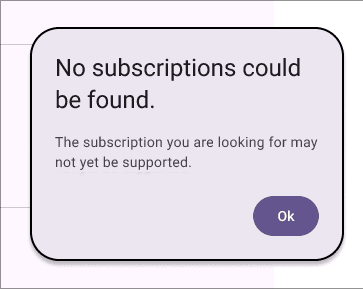 To help users resolve errors we tell users that no subscription could be found if they search for something that doesn’t exist to they know to try searching for something else. This way users know that it isn’t just taking a long time for the results to load.